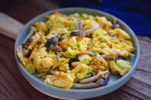 1. 蘑菇炒鸡蛋:将蘑菇洗净切片,鸡蛋打散备用。锅中加油,先炒鸡蛋至半熟,再加入蘑菇翻炒,最后加入适量的盐、生抽、葱花等调味料,翻炒均匀即可。
